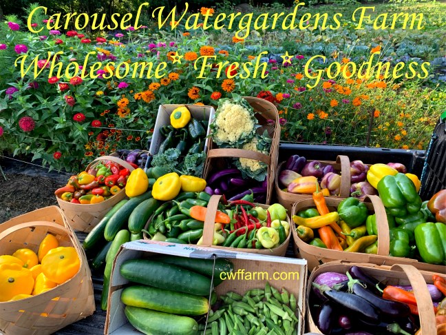 Here is just some of the wholesome, fresh goodness you’ll find at Carousel Watergardens Farm Market day this Saturday August 27th. Our farm stand will be set up in the parking lot of the Glenwood United Methodist Church from 9 am -12 pm located at 2833 Valleyview Dr., Columbus, OH. 43204. Located at the corner of Hague & Valleyview Drive. Just look for our big gray market trailer. Please be sure to share & tell all your friends and family.