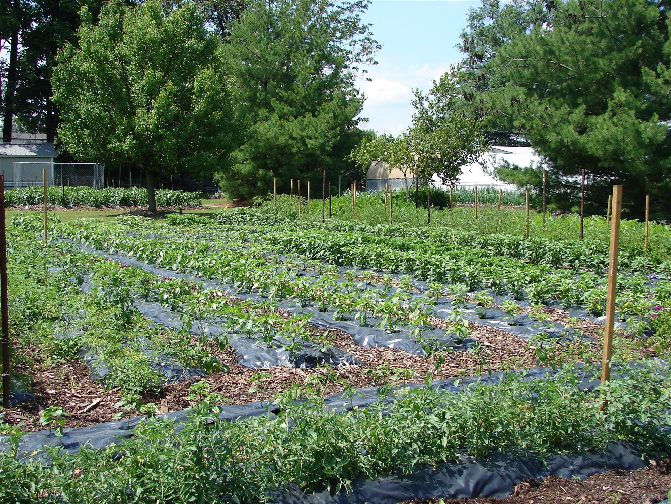 high tunnel greenhouses to get a jump on spring, then when the weather breaks the plastic either comes off or the sides are raised on the high tunnels. We plant in raised beds with drip irrigation and black mulch.